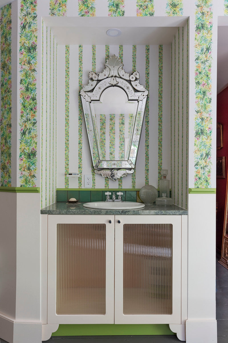 Borrowing from eras spanning Victorian, Art Deco, Mid century and Contemporary movements, the space becomes uniquely timeless. The bathroom features the premier of our very own wallpaper, a custom designed and built vanity, architectural salvage, and an eclectic blend of finishes. The bathroom is flooded with the scent of our own Formula 1 + 2, an aroma that evokes the fresh essence of soap itself.